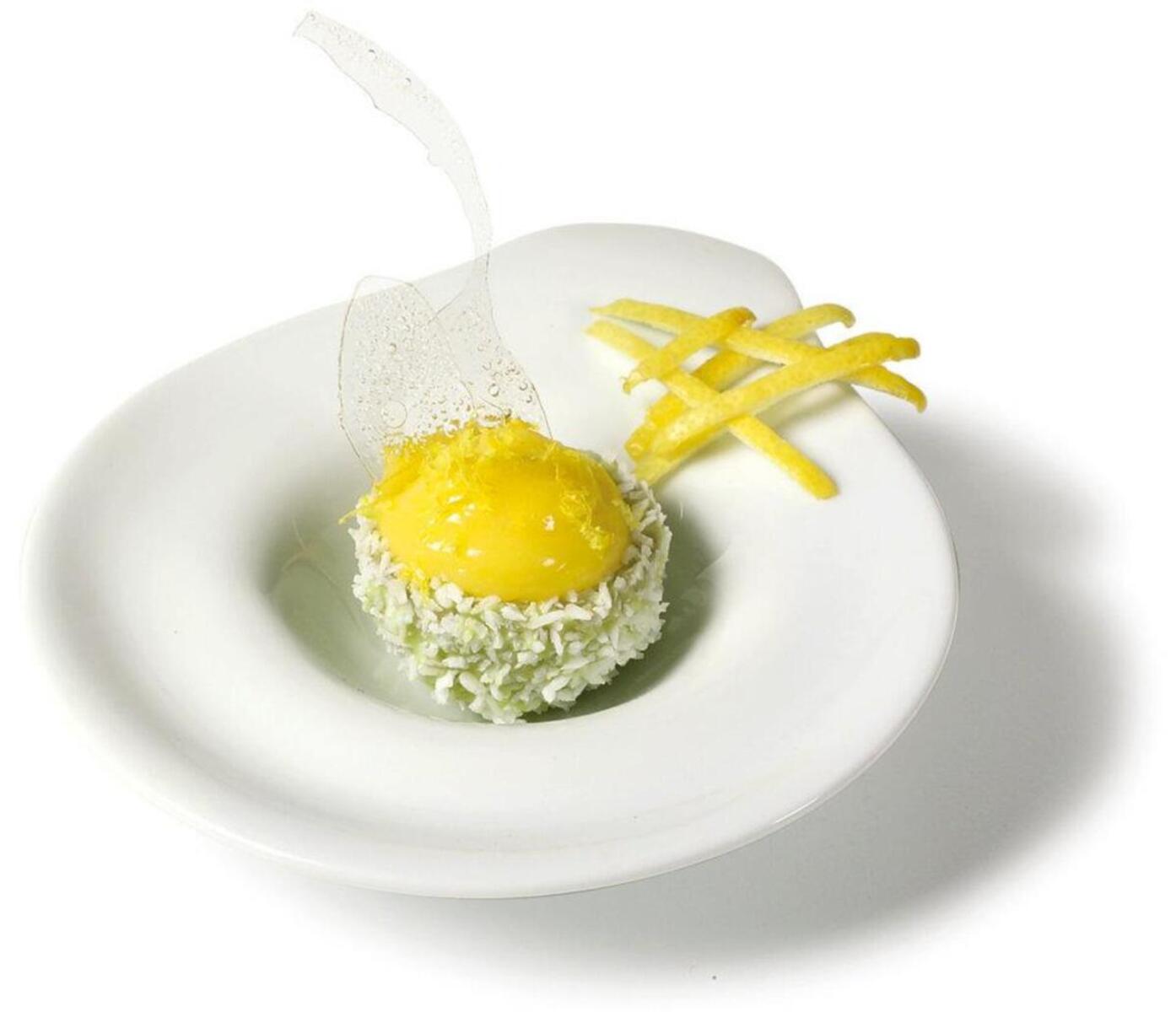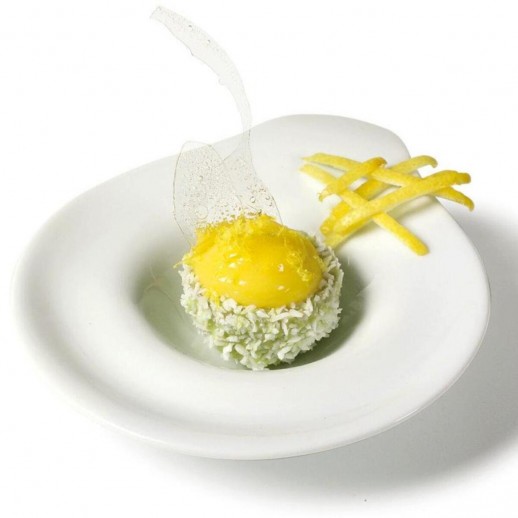 Тестен вафлен продукт за пълнене със сметана, сладки и солени кремове и сладолед. Вафлена купичка с лимоново покритие и поръска от сушен настърган кокос